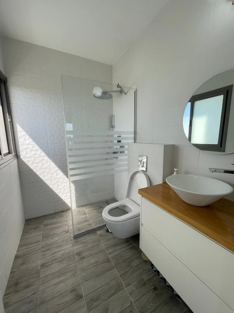 5 חדרים 170 מ"ר בנוי במפלס אחד + כ-90 מ"ר מרפסות שמש .